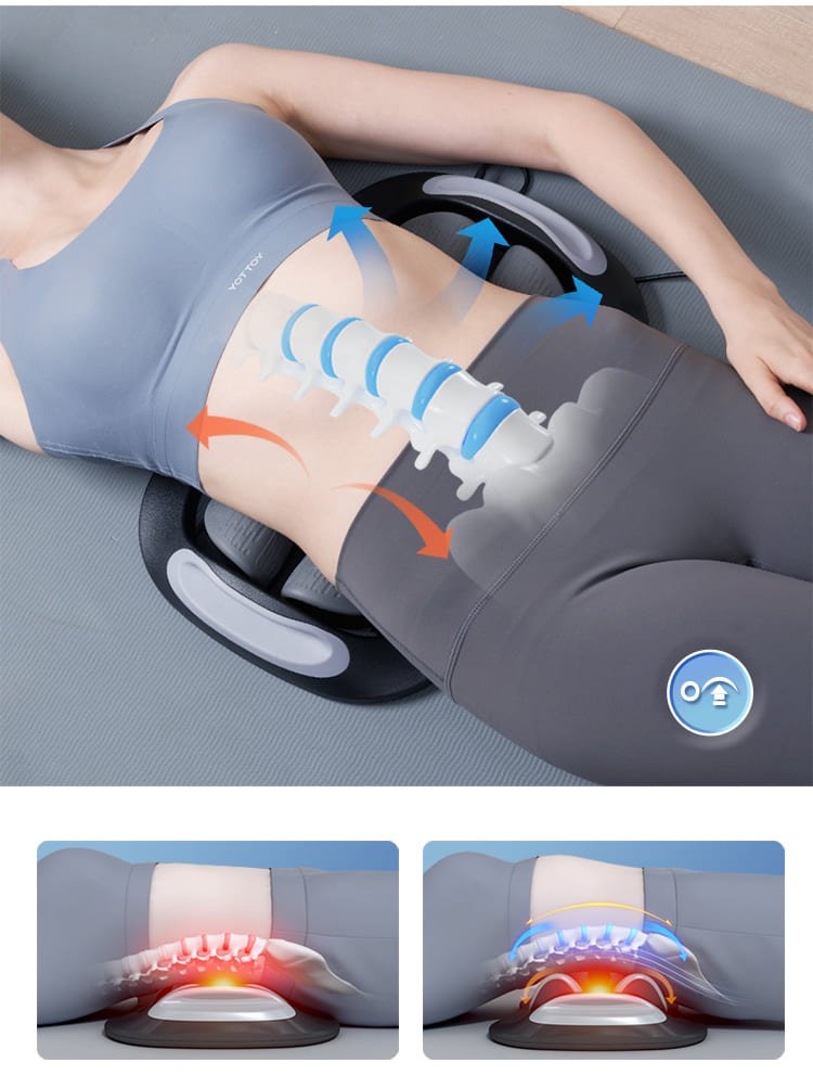 C’est le premier appareil multi-fonctionnel de décompression et de massage avec vibration et chaleur qui aide à soulager les tensions musculaires lombaires, à améliorer la flexibilité et les amplitudes de mouvement et la circulation sanguine.